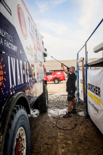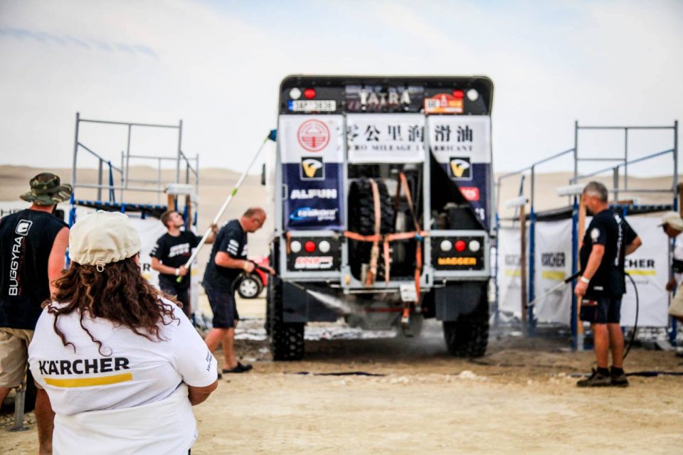 Tým Bugyrra Racing si letos pochvaluje vysokotlaké čističe od Kärcheru, které mezi jednotlivými etapami usnadňují očistu vozu. „Určitě to je pro kluky mechaniky ulehčení,“ říká sám Martin Kolomý.