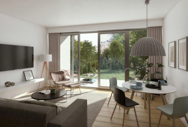 Přitažlivé nejsou jen exteriéry, ale rovněž samotné byty. Projekt je navržen s ohledem na praktičnost a maximální pohodlí budoucích obyvatel. Jednou z hlavních předností bytů jsou vysoké stropy a velká okna, která zaručují výbornou světlost interiérů a vzdušnost prostoru.