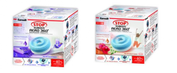 Voňavý nadstandard Aby bylo všechno dokonalé, odstraňuje Ceresit STOP VLHKOSTI AERO 360° nejen samotné vlhko, ale také zápach, který jej obvykle provází. Takové to těžké, zatuchlé, velmi specifické „aroma“, jež hned hlásí, že je v chatě problém. Tablety Ceresit STOP VLHKOSTI AERO 360° tento zápach absorbují až ze 70 %. A co víc: vybrat si můžete i naprostou novinku a použít pohlcovač vlhkosti i místo aromaterapie. K dostání jsou totiž tablety z řady AROMATHERAPY, s vůní LEVANDULE a také s vůní SÍLA OVOCE. Fungují stejně jako klasické tablety, již za chvíli uvidíte v pohlcovači vlhkosti první „nachytané“ kapky vody. Ale tyto tablety navíc při svém rozpouštění uvolňují ještě voňavé složky, takže až příště otevřete po dlouhé době dveře své chalupy, do nosu už vás nepraští plíseň, ale svěží vůně podle vašeho výběru. A na chatě vám tak bude letos opravdu božsky!
